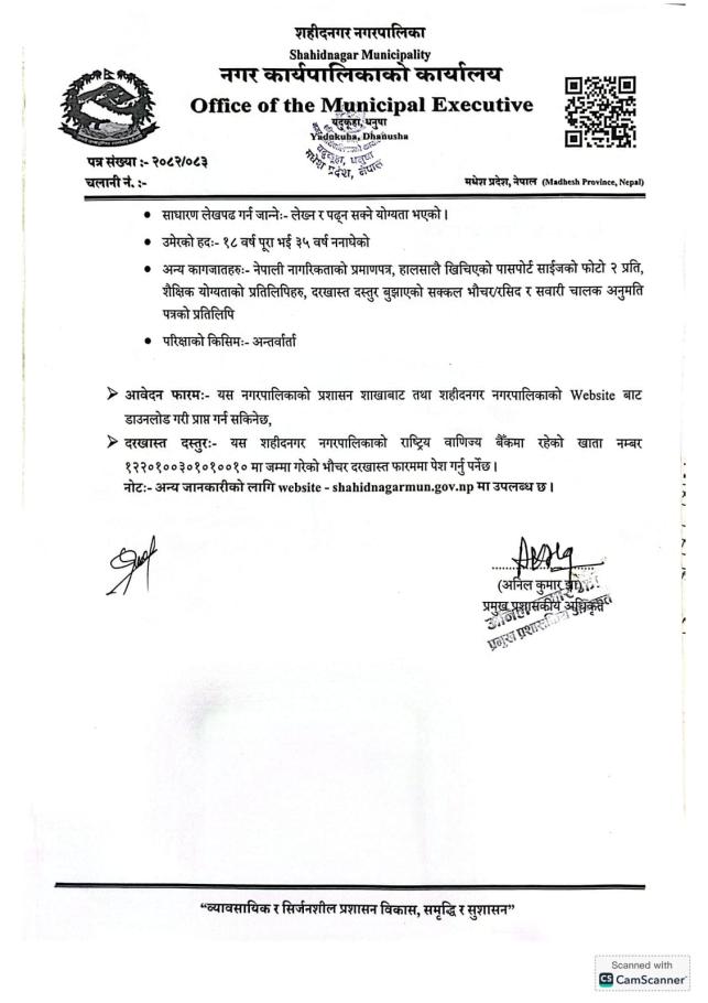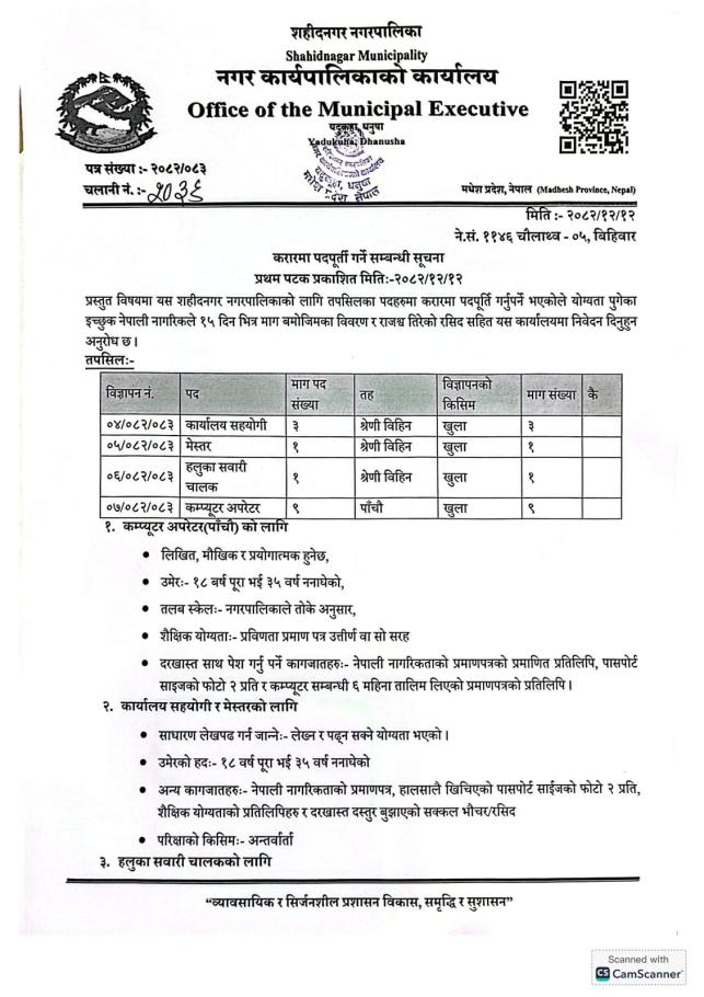 करारमा पदपुर्ती गर्ने सम्बन्धि सुचना ।
