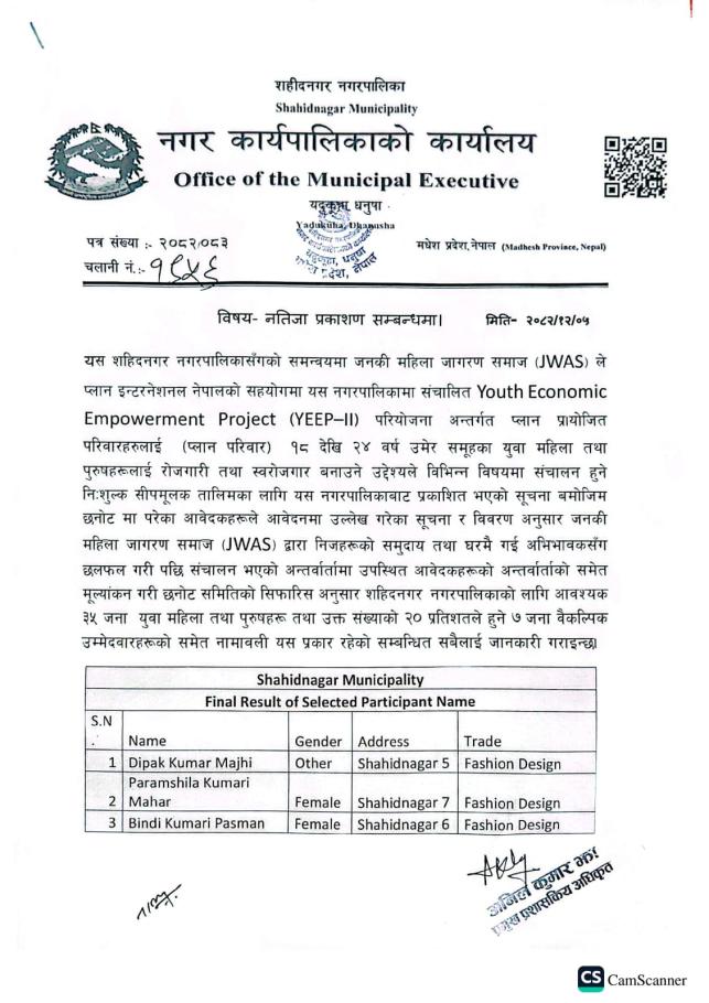 नतिजा प्रकाशन सम्बन्धमा ।