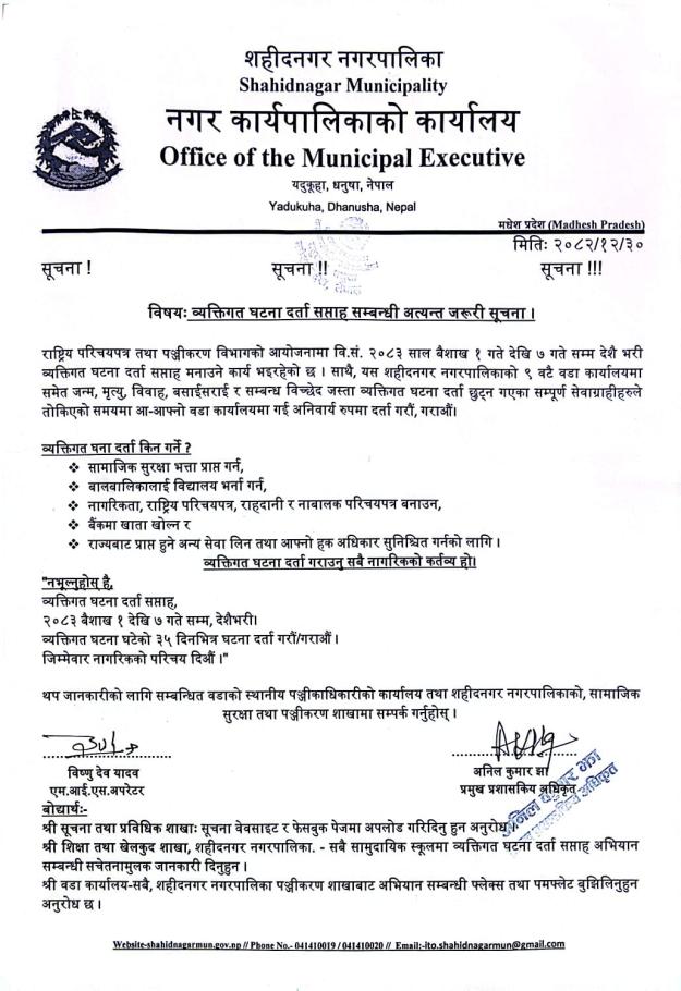 » व्यक्तिगत घटना दर्ता सप्ताह सम्बन्धि अत्यन्त जरुरी सुचना ।